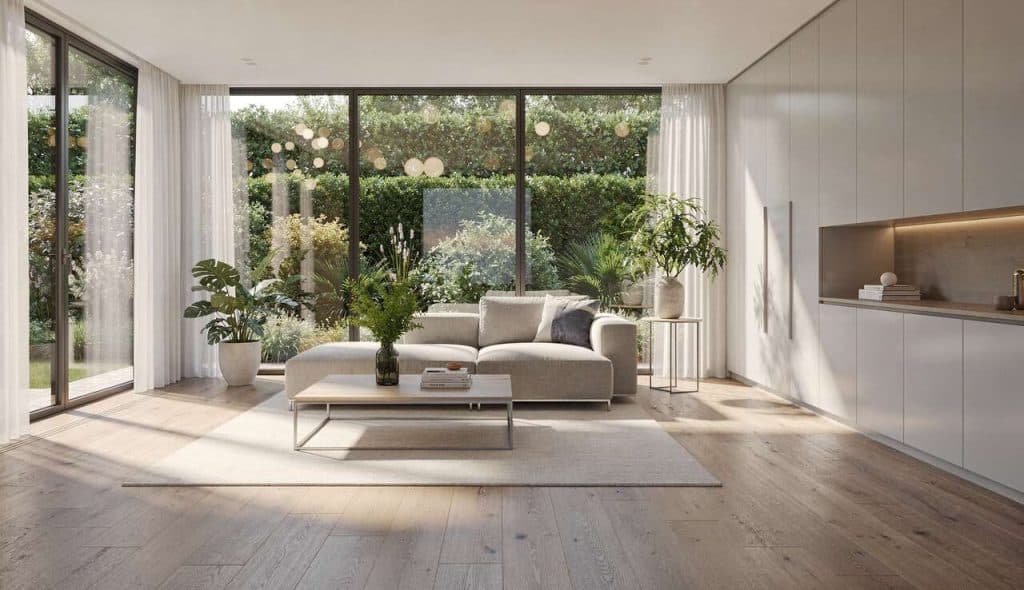 Après la pose des dalles et chapes, le choix du revêtement de sol final était une étape décisive pour l’ambiance de la maison. Un parquet en chêne a été privilégié dans les pièces de vie et les chambres pour sa chaleur et son élégance intemporelle. Dans les pièces d’eau, un carrelage grand format ou un béton ciré a pu être sélectionné pour sa résistance et sa facilité d’entretien, créant un contraste de matières intéressant.